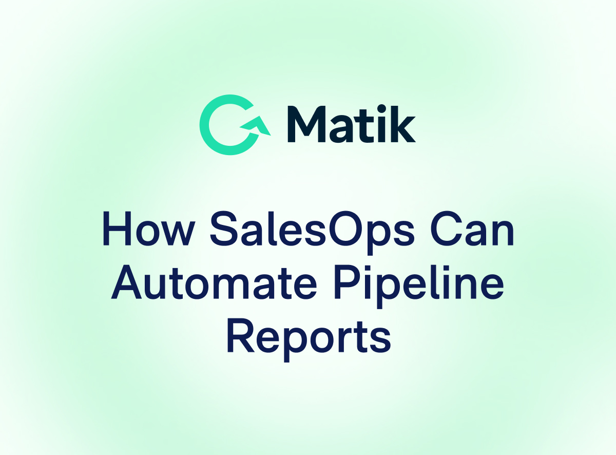 Automating pipeline reporting helps SalesOps move beyond manual tasks to become a proactive driver of revenue growth. Matik keeps reports accurate, reliable, and presentation-ready so your team can focus on optimizing pipeline health and supporting sales execution.