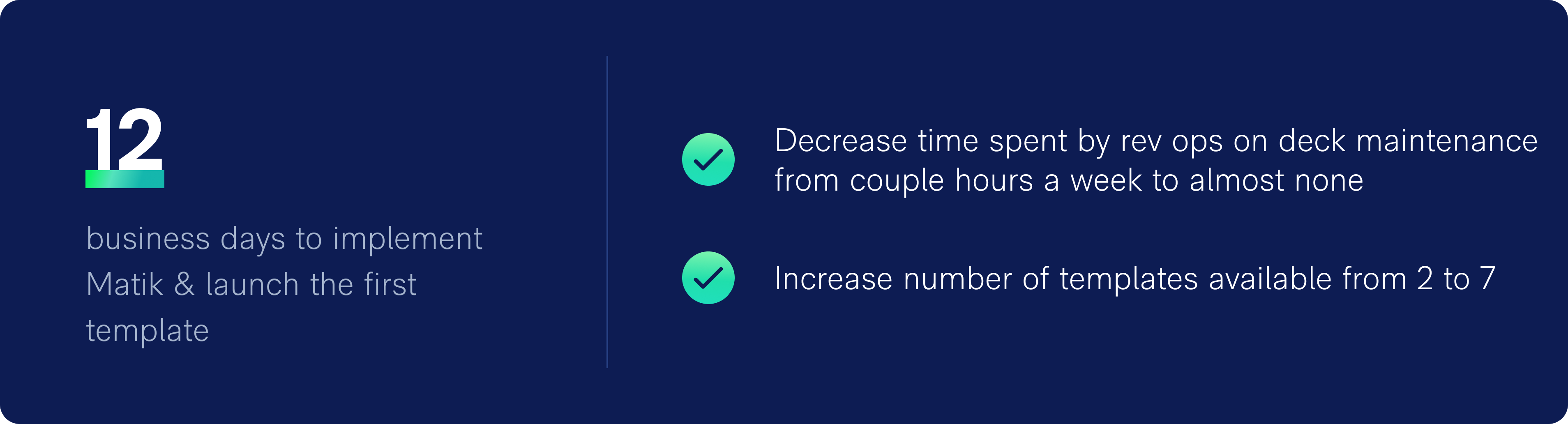 Sara implemented Matik in 12 business days. “It was so breezy for me. I feel it was self-explanatory the way you set it up.”
