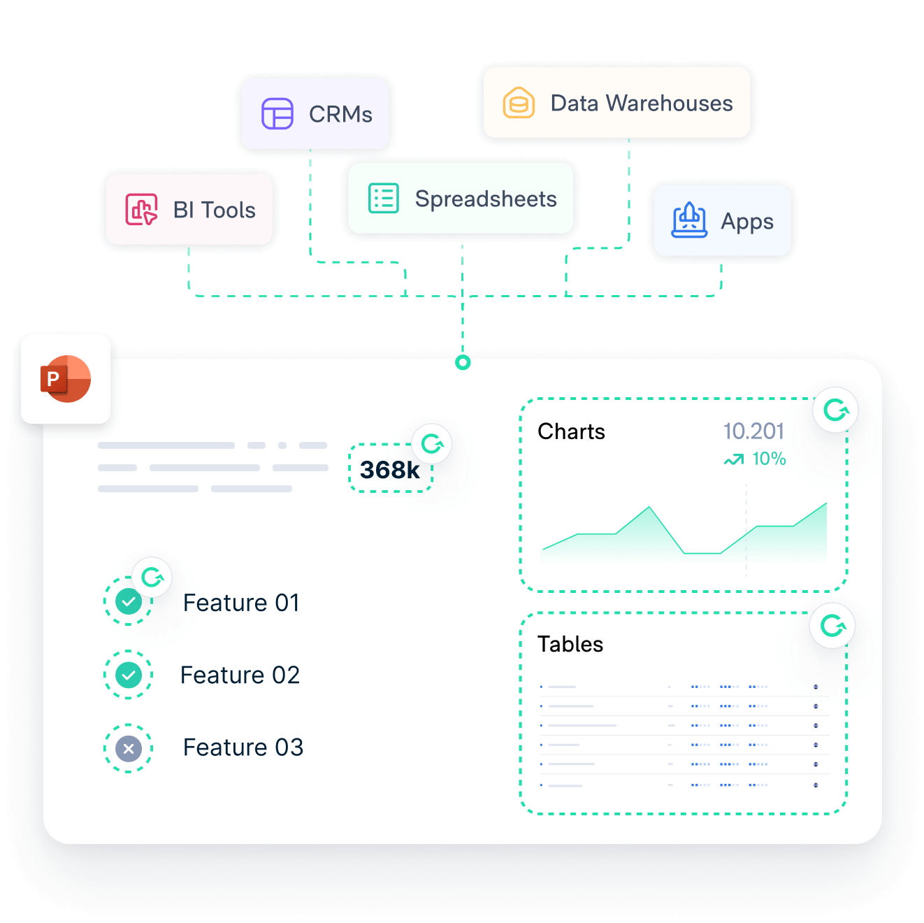 Automate text, visuals, and key insights in Microsoft PowerPoint - telling the right story using if-then logic and your existing data.